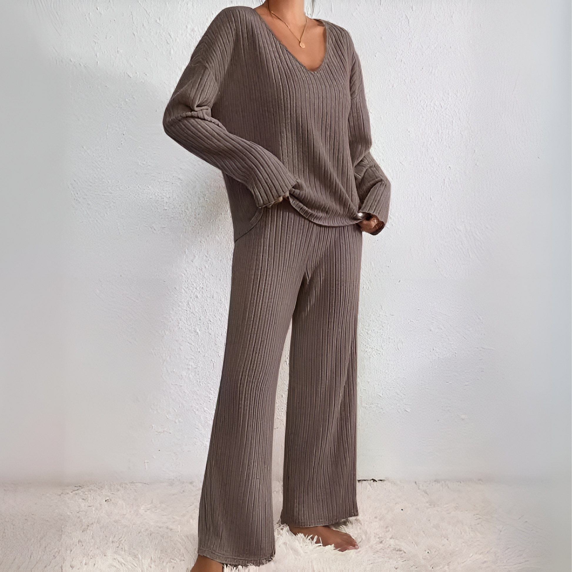 - Estilo sin esfuerzo — transita fácilmente de relajarte en casa a un día casual fuera con este conjunto chic