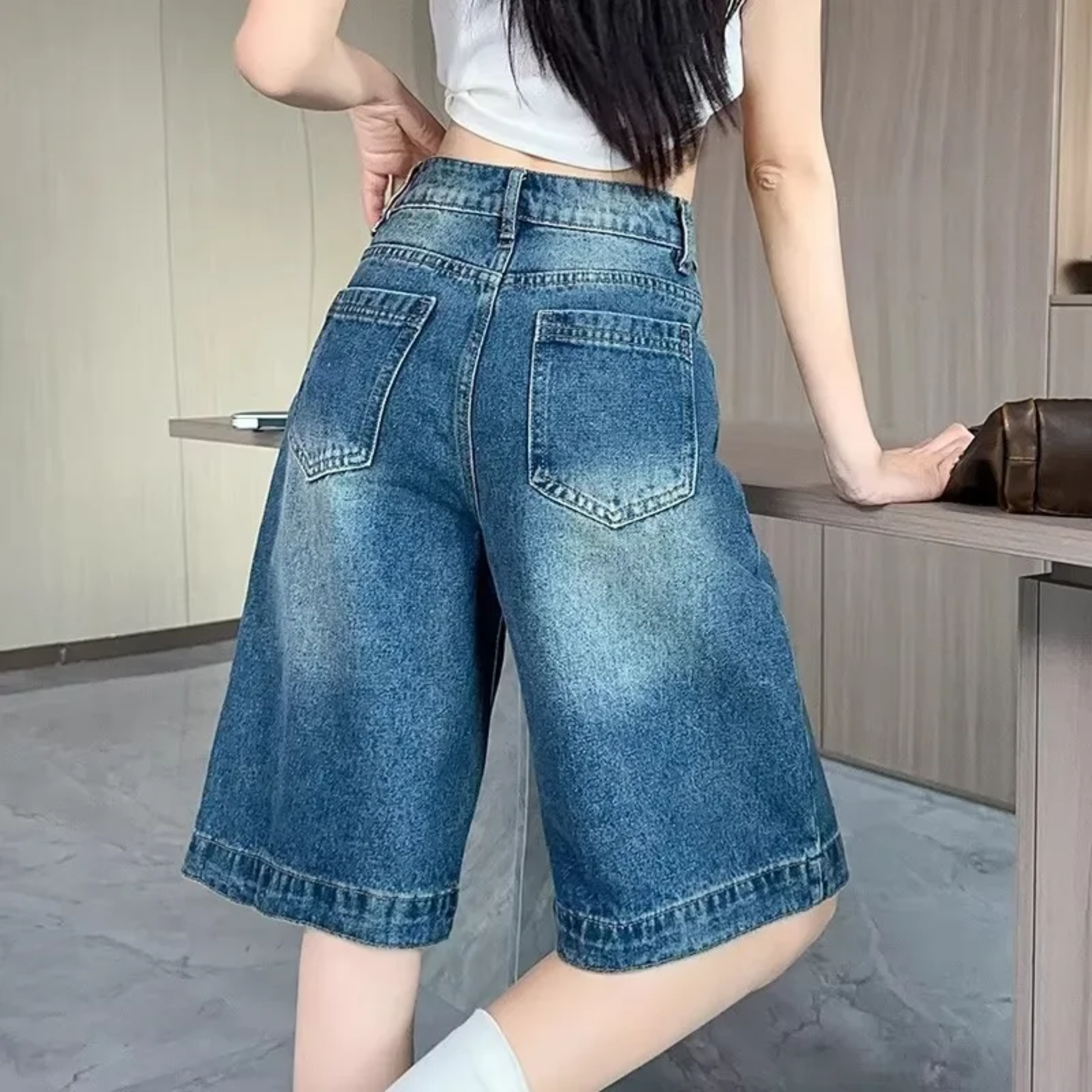 Mafalda entiende tu estilo de vida dinámico. Su tejido vaquero lavado no solo es duradero y cómodo, sino que aporta ese look casual chic que buscas. El largo perfecto te permite moverte con libertad mientras mantienes un estilo cuidado. El diseño clásico con acabado lavado la hace perfecta para cualquier ocasión casual, desde paseos por la ciudad hasta escapadas de fin de semana.
