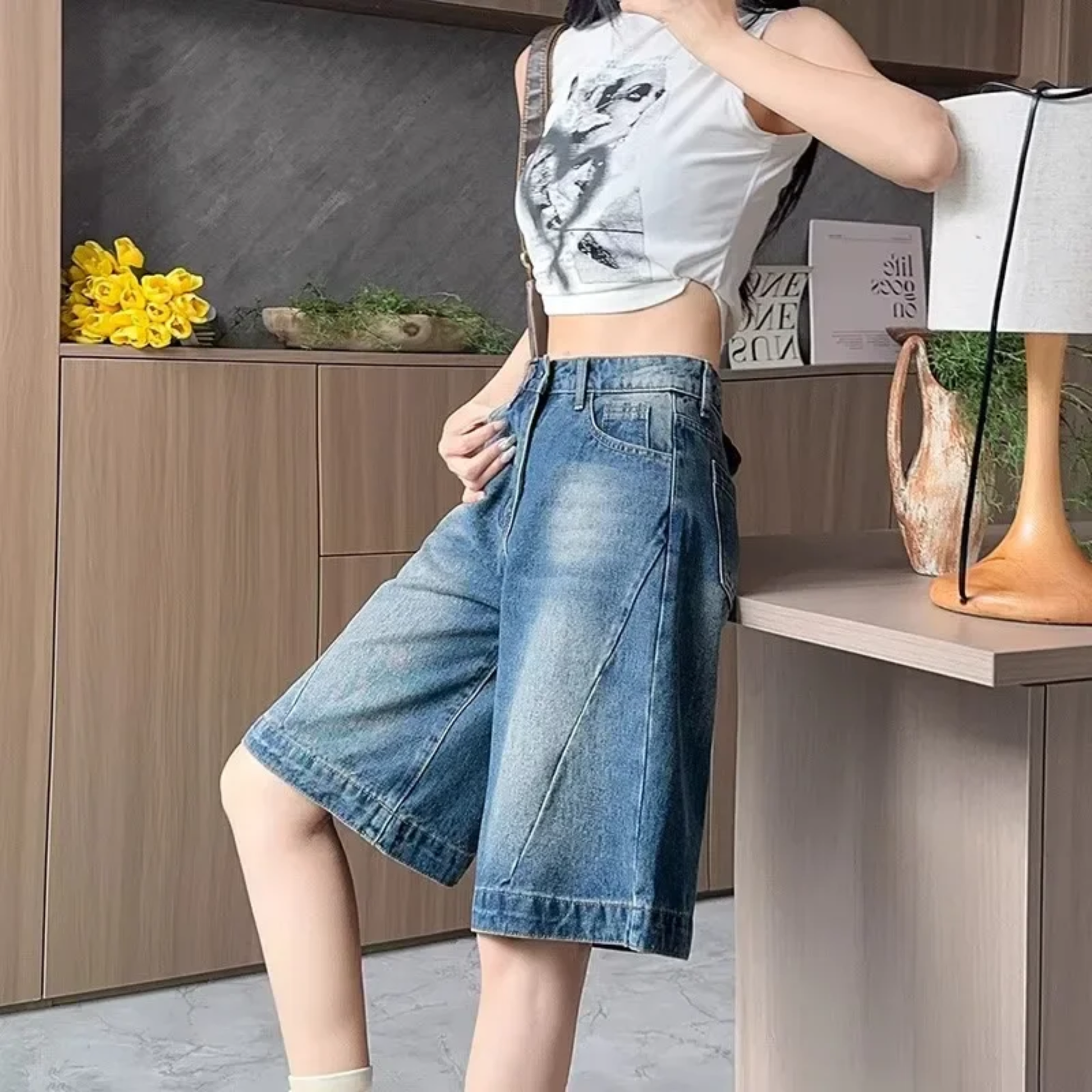Casual chic: Combínala con camisa anudada y alpargatas. Ideal para paseos por la ciudad o escapadas de verano.