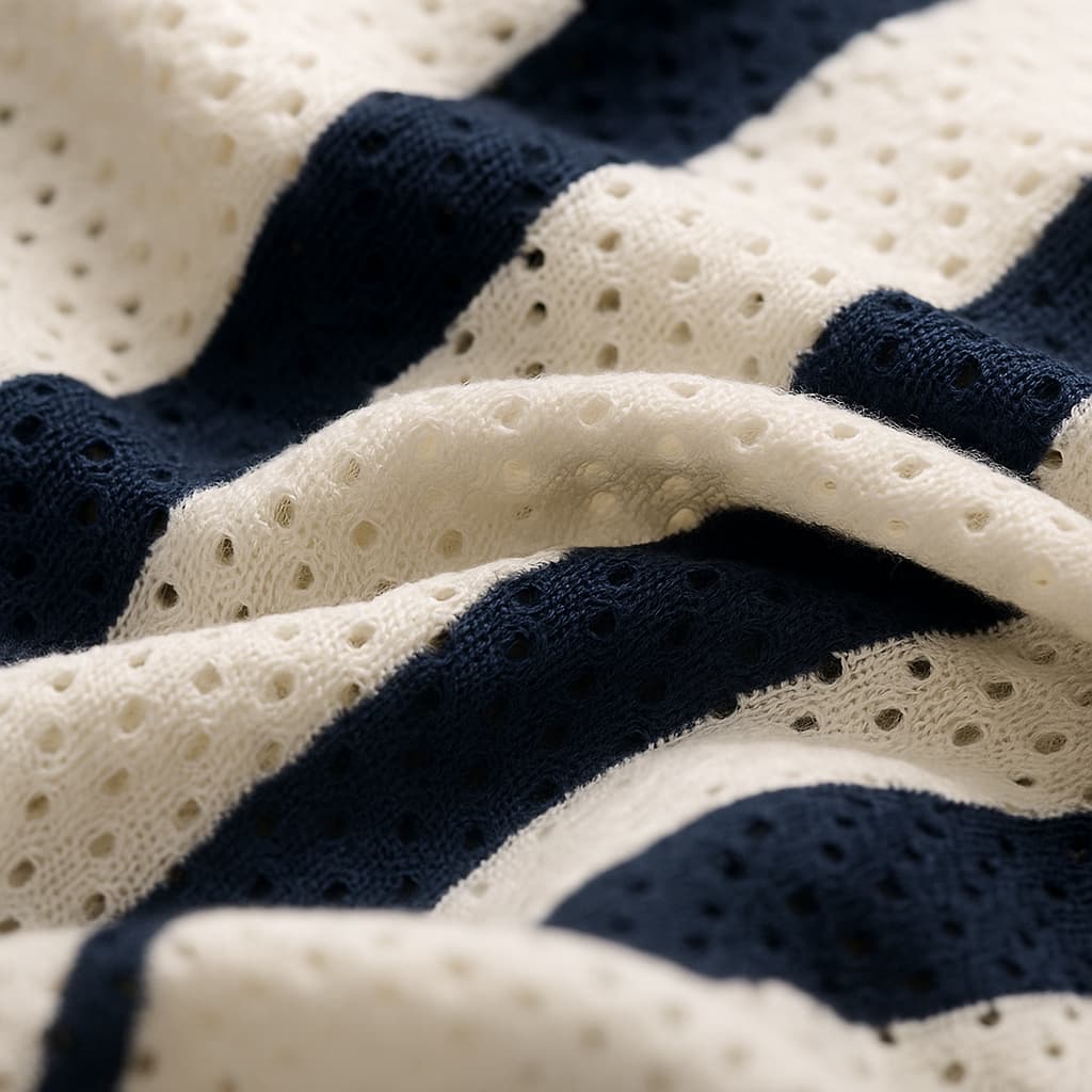 - Ligero y fresco — Mezcla de algodón perforado perfecto para los cielos de verano.