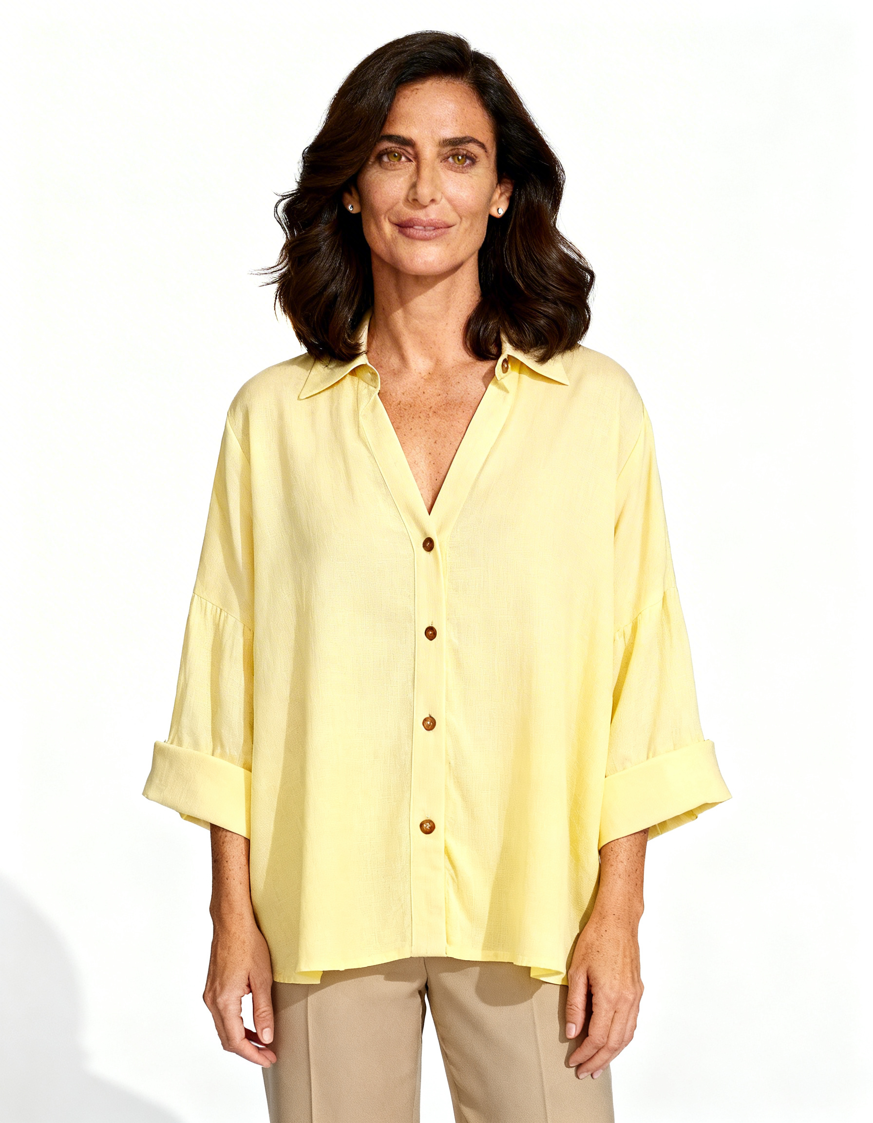 Cada puntada de la Camisa Sofía ha sido pensada para realzar tu belleza natural. Los volantes en el cuello enmarcan tu rostro de forma favorecedora, mientras que las mangas abullonadas añaden volumen justo donde necesitas para equilibrar tu silueta. El cierre discreto y el acabado impecable demuestran la calidad premium que mereces.