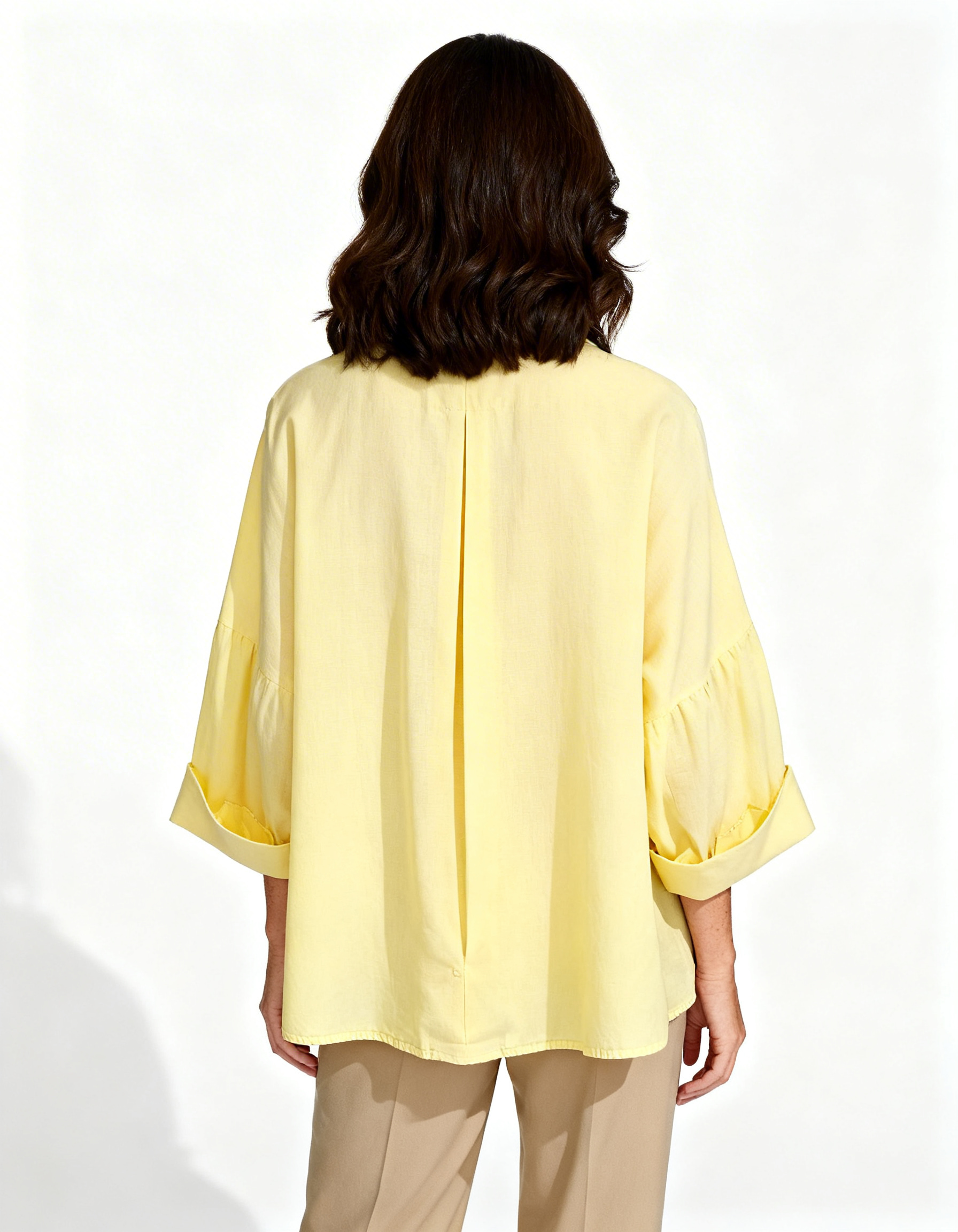 Imagina entrar en una reunión importante o en una cena especial y sentir todas las miradas sobre ti. La Camisa Sofía no es solo una prenda, es tu aliada perfecta para brillar con sofisticación natural. Sus delicados volantes y mangas abullonadas crean una silueta femenina y favorecedora que te hará sentir única desde el primer momento.